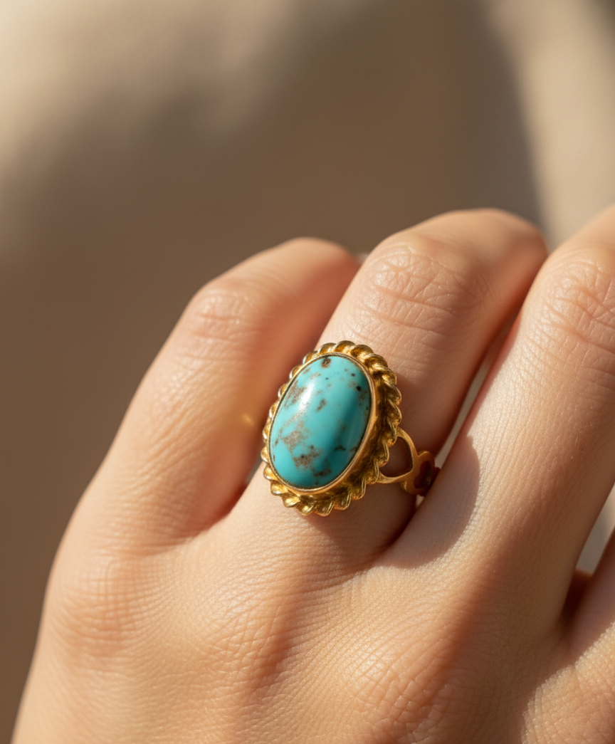 پیوند هنر و اصالت؛ انگشتر فیروزه طرح سنتی بلوچی